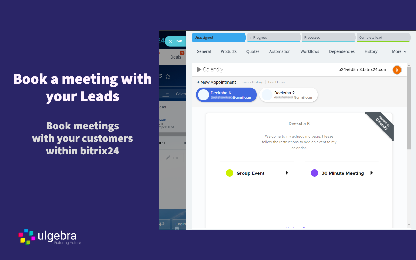 Schedule and view appointments with Leads, Contacts and Deals within Bitrix24