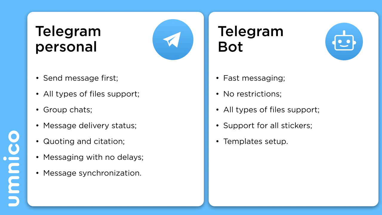 P.S. Team Umnico does not recommend sending bulk messages using a 3d party contact database or for sending spam. WhatsApp and Telegram accounts may be permanently suspended if users mark your message as spam.
