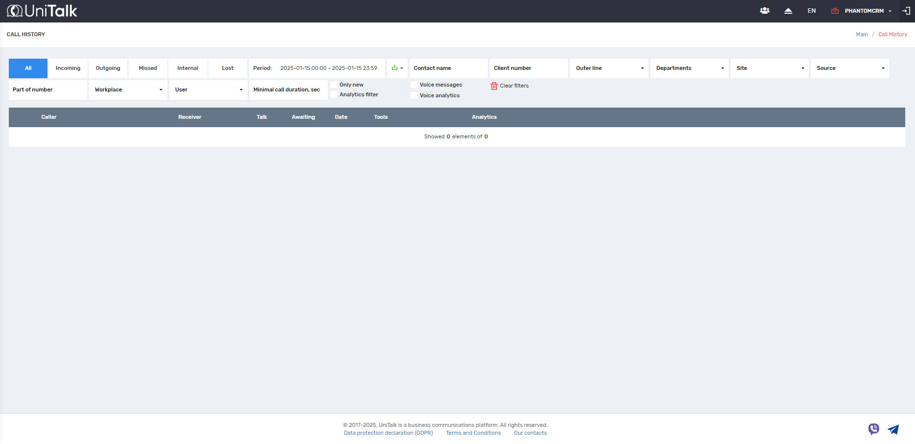 UniTalk PBX allows you to easily distribute incoming calls among any number of employees and departments, reduce missed calls, collect call statistics by number and manager, store call records, and much more.