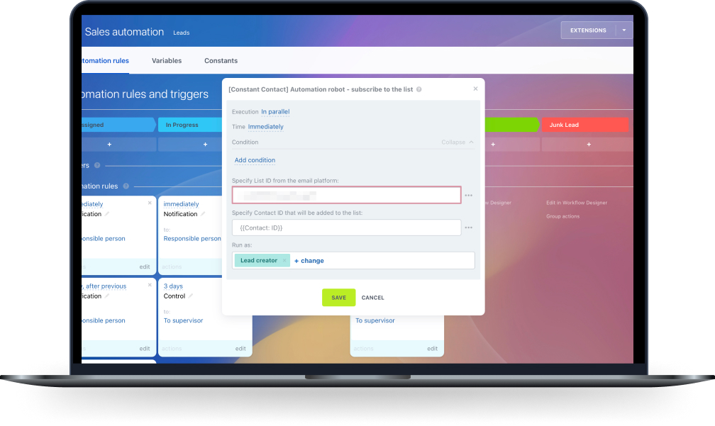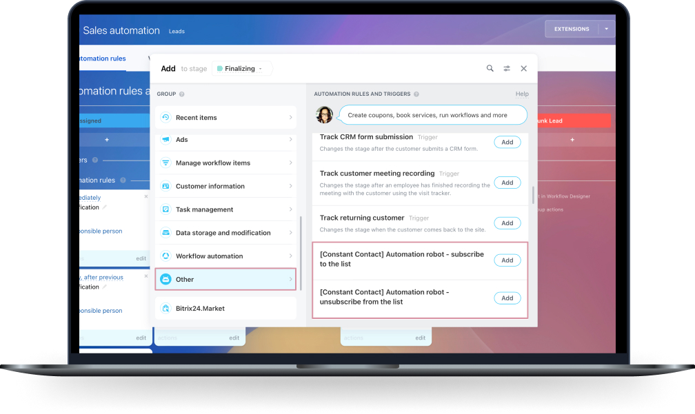 With Bitrix24 custom automation rules, you can automate the entire process and save valuable time and effort. It is plain simple.