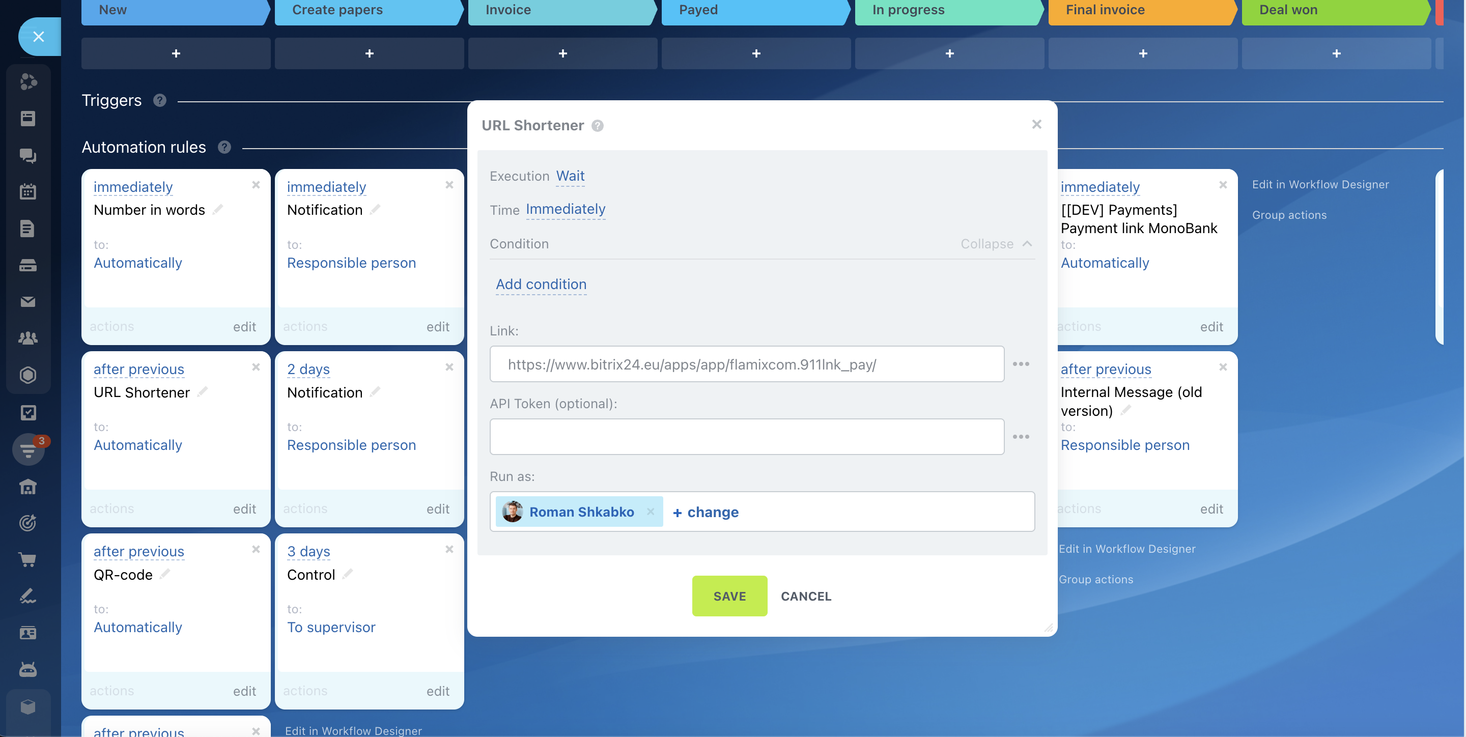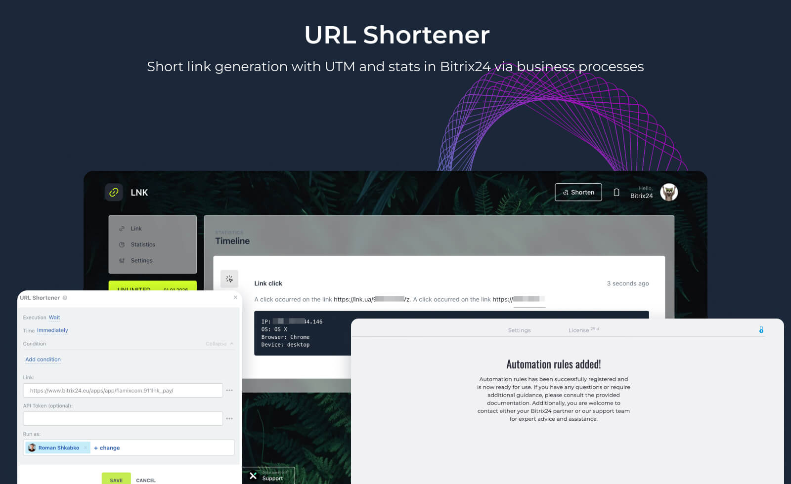 Short link generation via automation rule and BPM