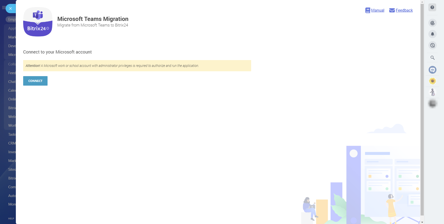 - First of all, only Bitrix24 account administrators can install and use the application.