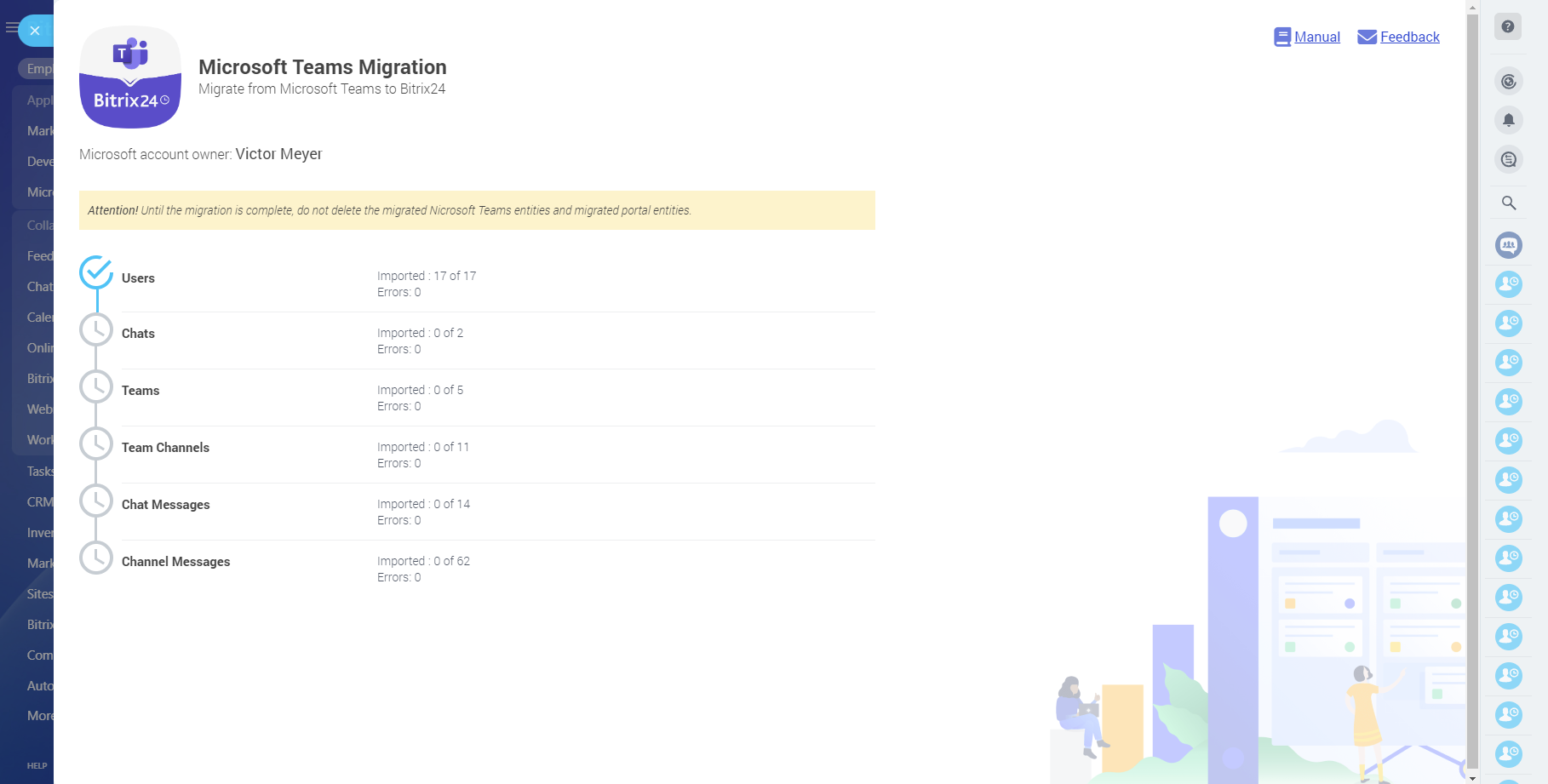 - Migration won't be completed unless you have a valid MS Teams license at the moment of importing data.