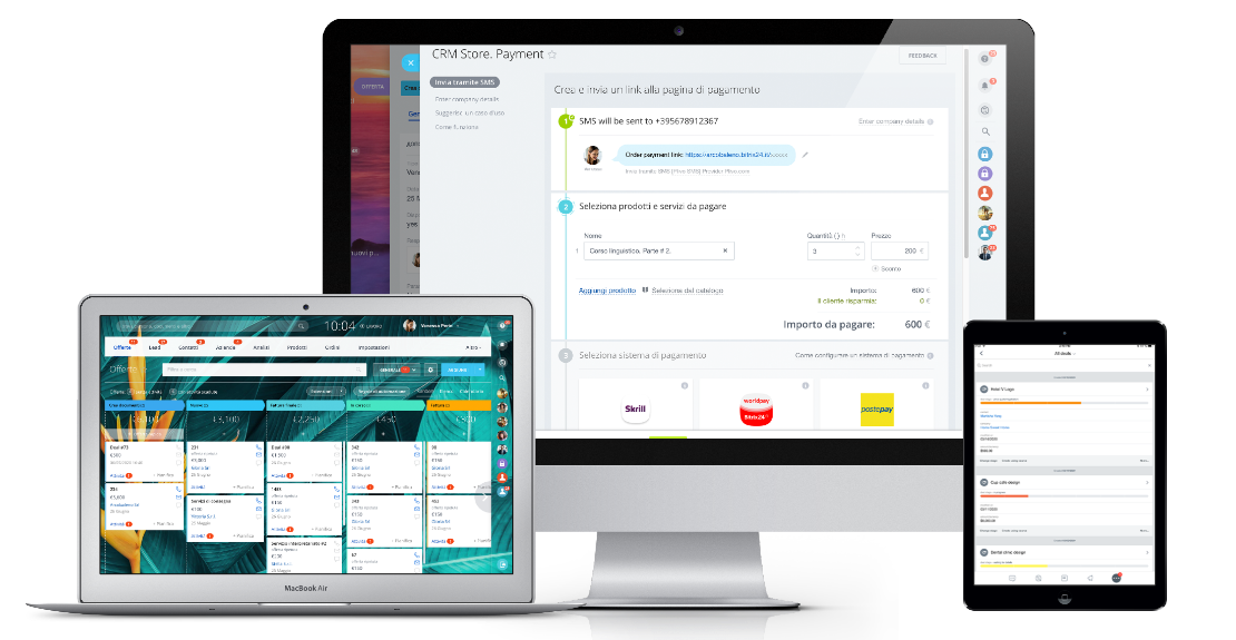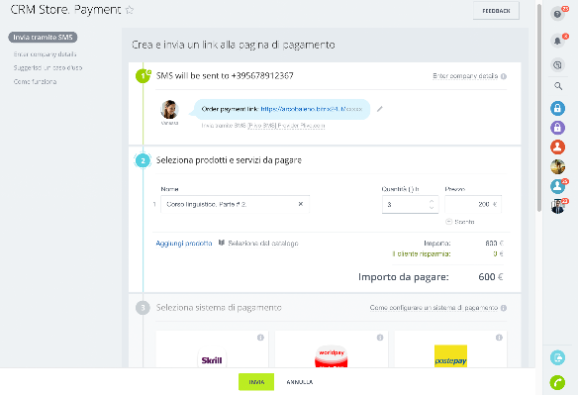 Mentre sei al telefono con un cliente, seleziona nel tuo CRM il prodotto di cui ha bisogno, scegli il metodo di consegna e invia al cliente il link di pagamento.