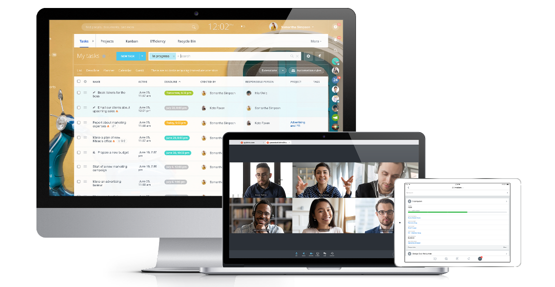 La collaborazione non ha confini. Con Bitrix24, essere in ufficio vuol dire essere online. Tenere videoconferenze, creare chat, automatizzare la routine degli incarichi con la Robotic Process Automation.