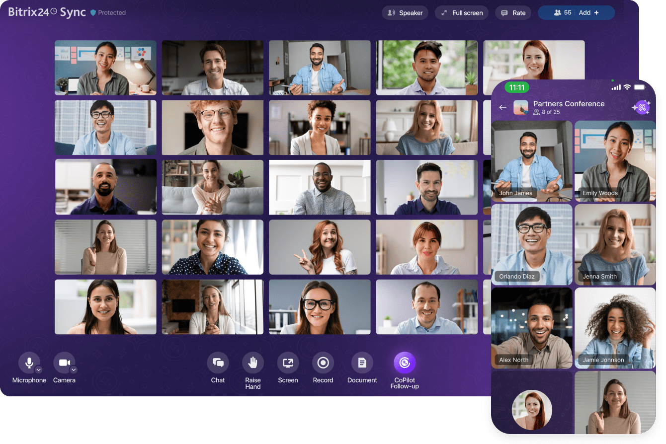 Le riunioni online nel nostro software di comunicazione hanno tutto ciò che ti aspetteresti da un software di videoconferenza di alto livello e sono già integrate con chat, incarichi, progetti, calendario, CRM e altri strumenti.